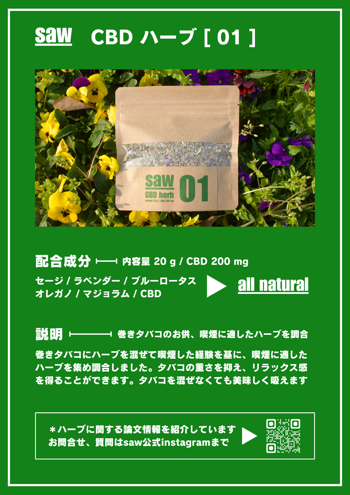 - CBD ハーブ [01]、CBD原料の使用量は1%