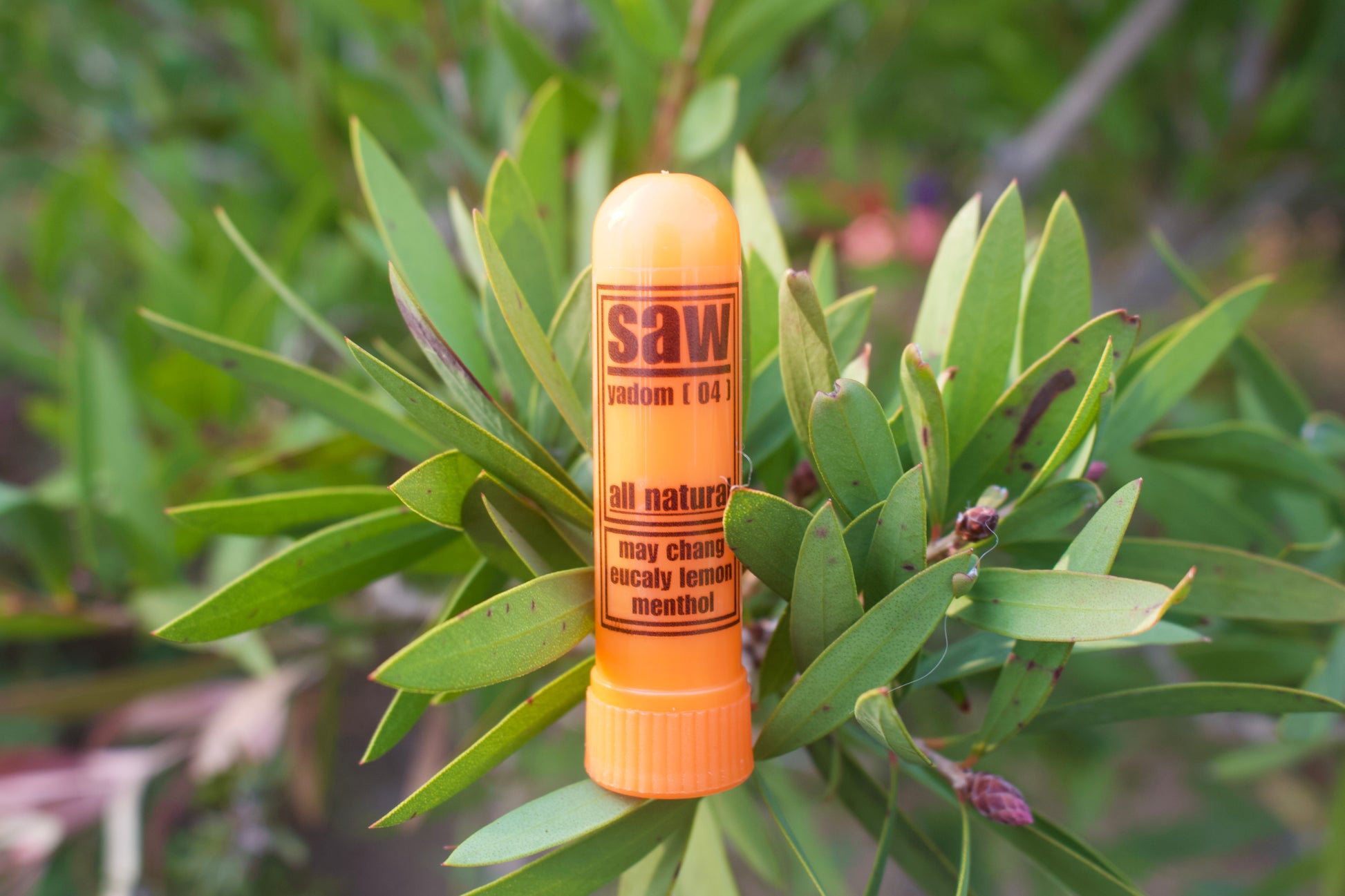 ヤードムとは、タイ語で嗅ぎ薬を意味します。中には精油類が入っており、ハーブの香りと冷感を感じます。常夏のタイでは、涼むためによく使われるアイテムです。